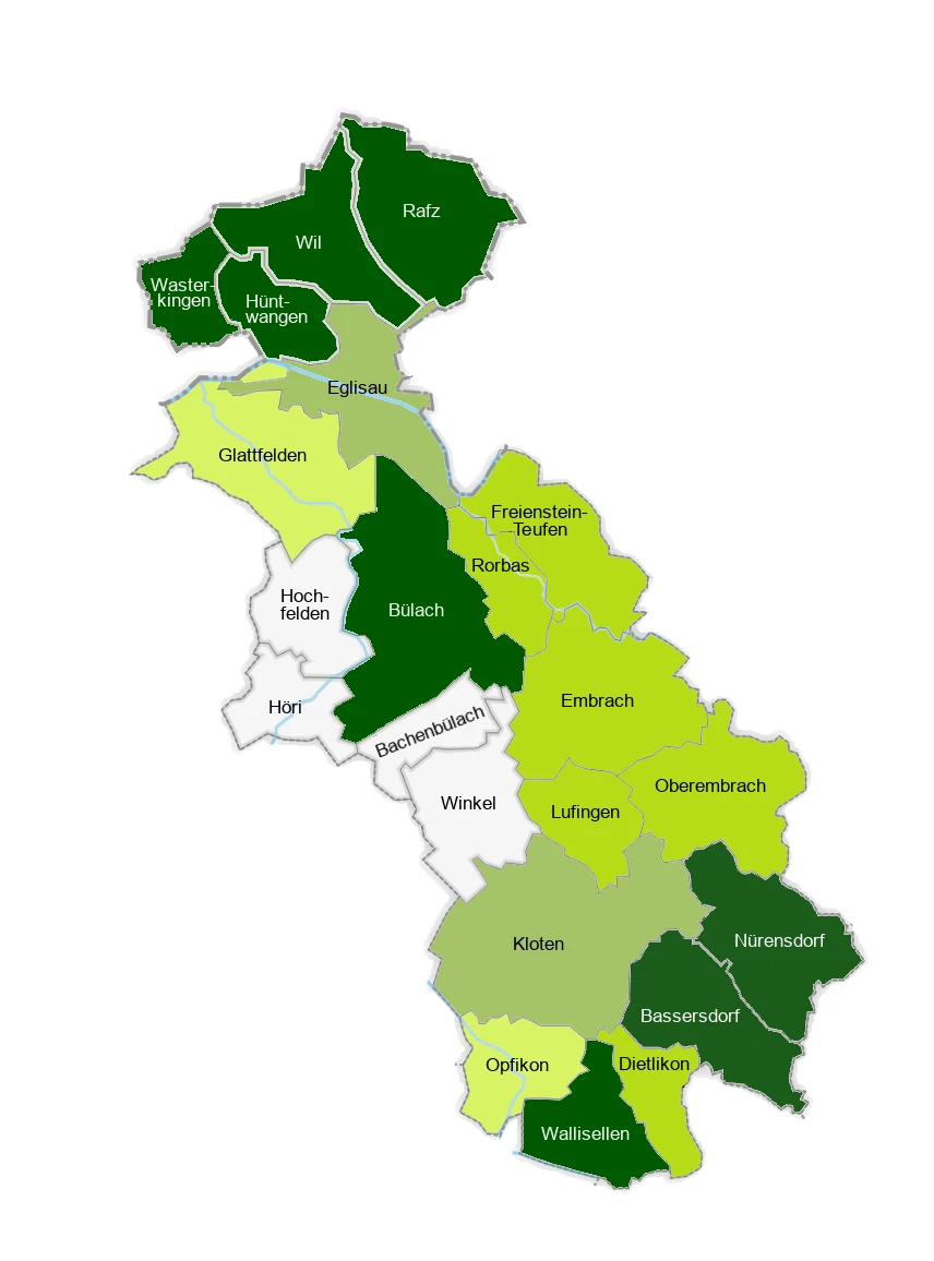 Die Grünliberalen Bezirk Bülach sind mit sieben Orts- und drei Regionalsektionen in insgesamt 18 Gemeinden vertreten.